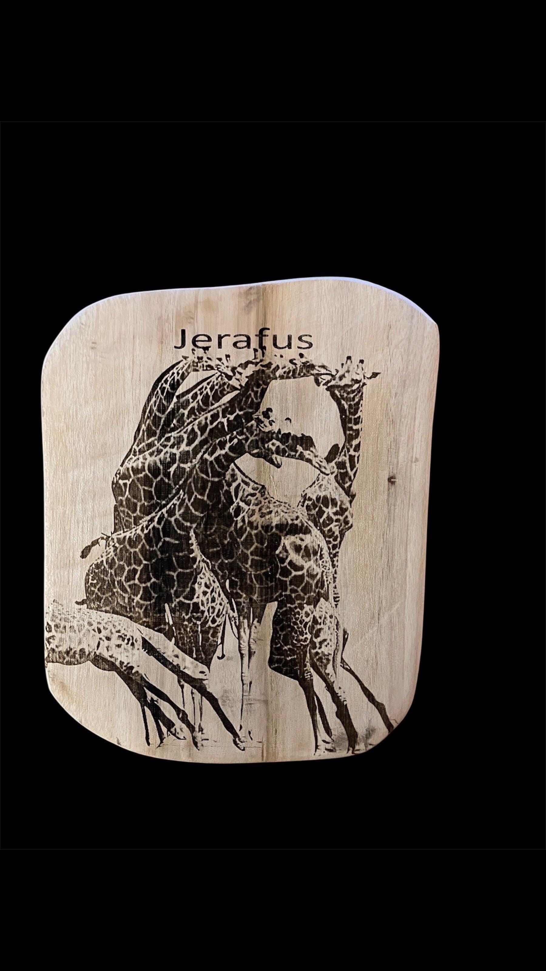 Gravure van christushoofd samengesteld met giraffen